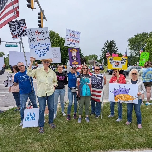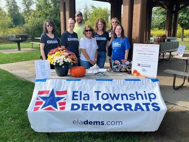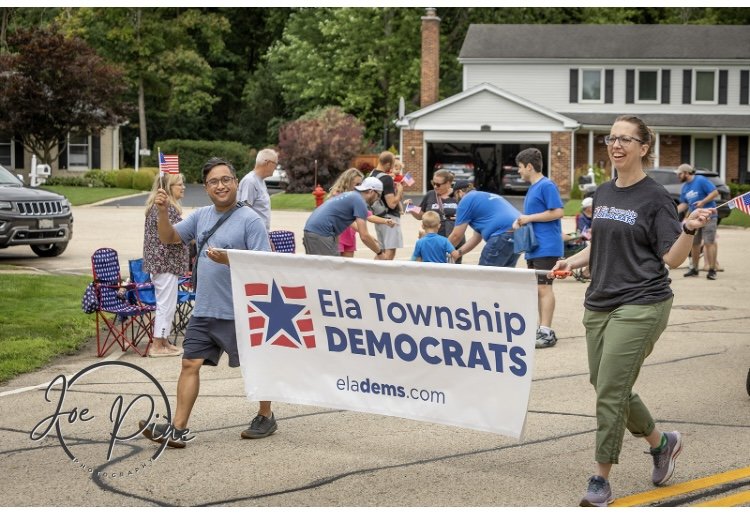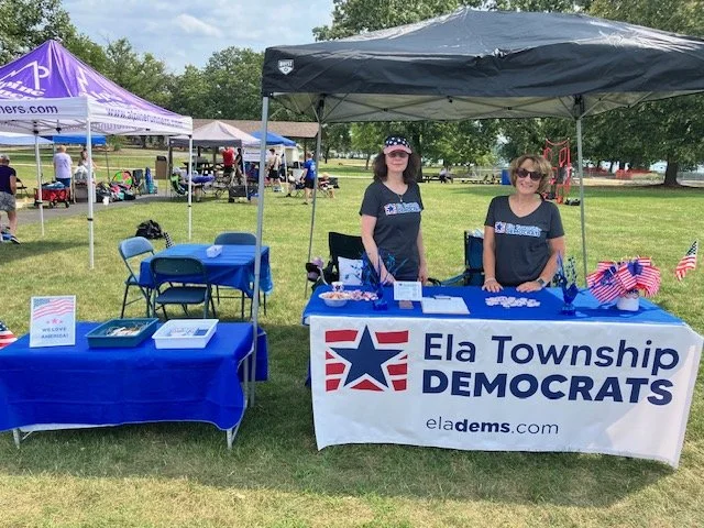 Ela Democrats is a volunteer group that meets once a month to discuss local political happenings, be informed by guest speakers, recruit and support candidates for our local elections, such as library and school boards, make plans to get out the vote, and to socialize. There are many ways to get involved from attending Ela Dems meetings, to becoming a precinct comitteeperson, marching in parades, participating in local fests and events, donating, writing postcards, participating in our private Facebook group, talking to friends and family about when and how to vote by mail, etc.
